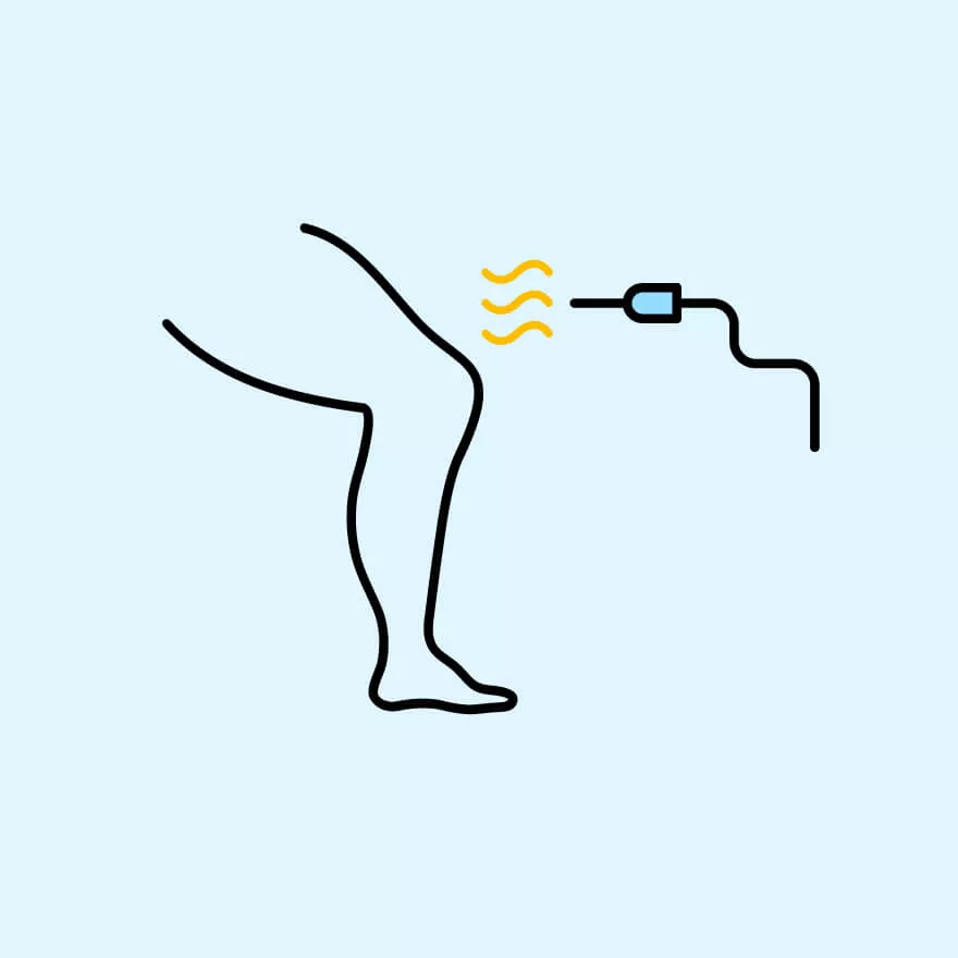 • Your vein doctor will then use targeted radiofrequency waves to heat specific areas of the unhealthy vein, thereby causing it to close.